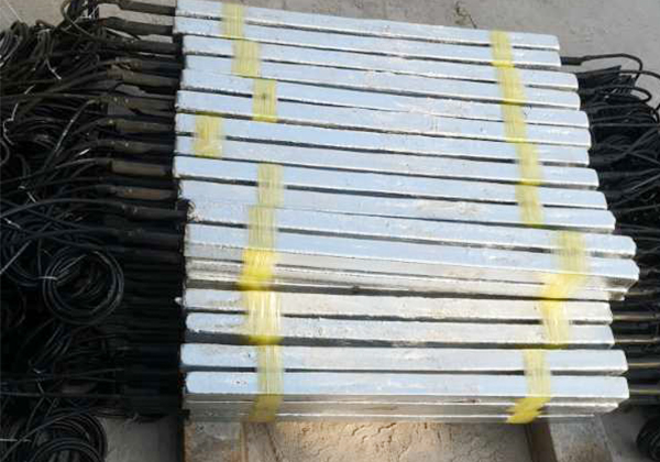 我公司生產(chǎn)的鋅接地電池由平行靠近的一對或四支鋅合金犧牲陽極棒組成,中間用絕緣墊塊隔開,然后一起裝在裝有填包料的棉布袋中,通過引出電纜焊接在絕緣裝置(絕緣接頭或法蘭)的兩側(cè),以防止強(qiáng)電沖擊引起的損壞,同時日常情況下接地電池也可對管道起保護(hù) ......